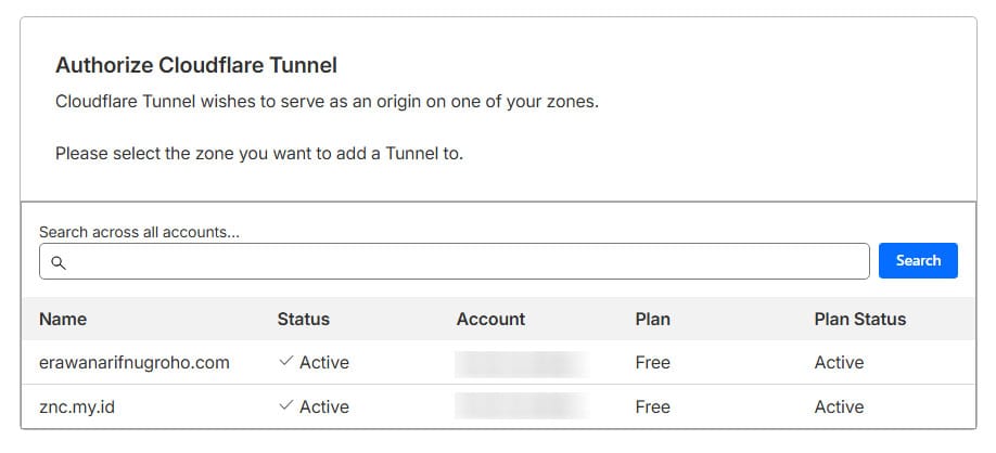 Created tunnel erawan with id cxx-xxx-xxx-xxx-xxxNah, nanti tunnel dengan id cxx-xxx-xxx-xxx-xxx yang akan muncul sebagai CNAME di Cloudflare.